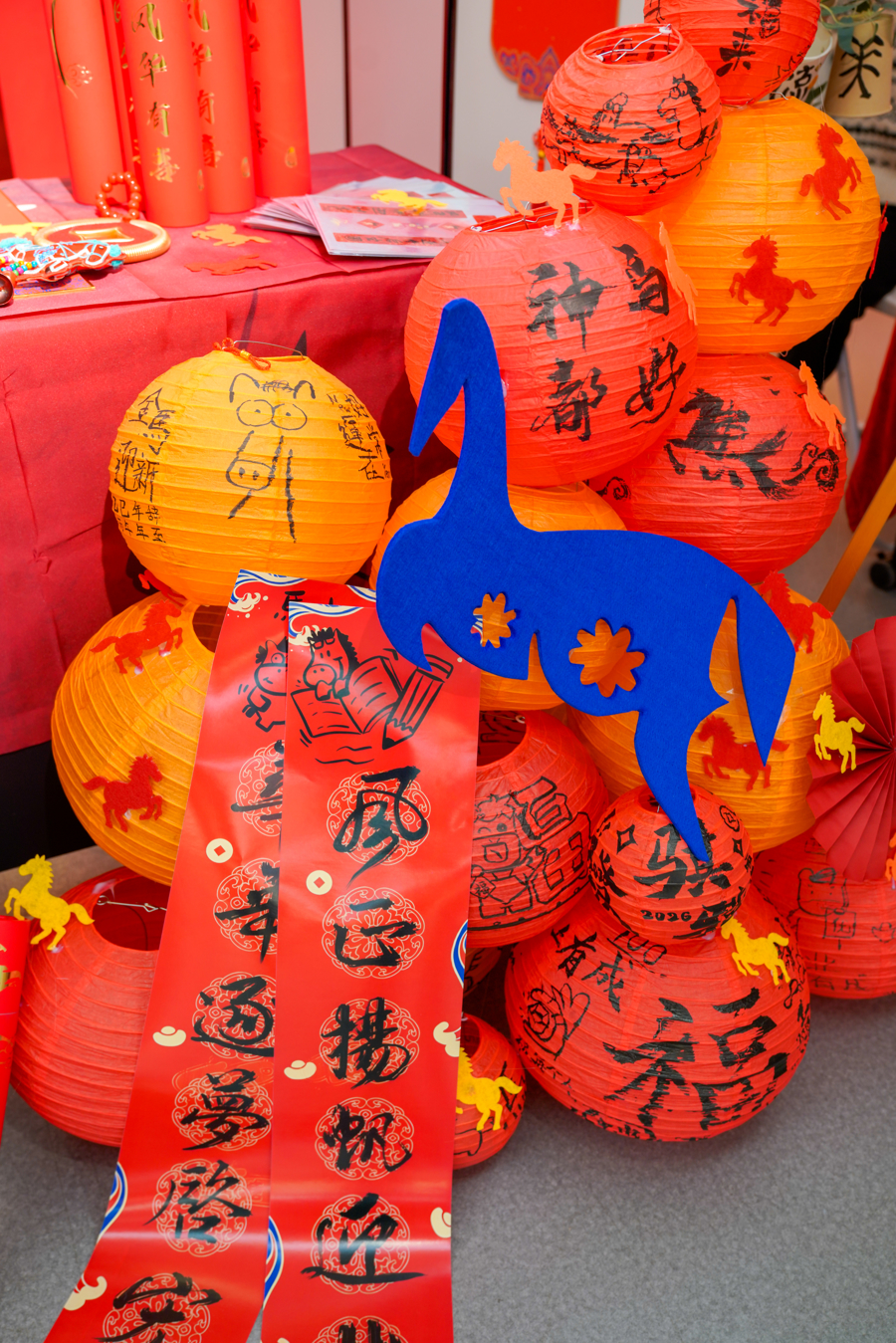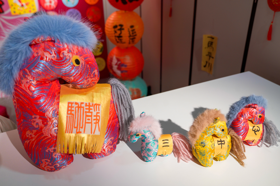 上海市第一师范学校附属小学的“鸿运马”融入了VR眼镜与机器人等科技元素,马尾化身为飘逸祥云,尾气似火箭升腾,象征中国科技与美好生活齐飞。
