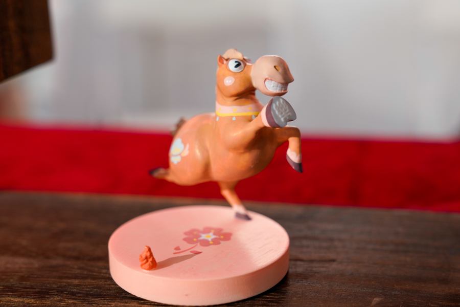 “笃笃马”和另外7匹同样由静安区书法篆刻联盟校各校设计的“寓意之马”,组成了一组特别的“八骏图”。“笃笃马”来自静安区青少年活动中心的创意,经AI建模,用3D打印而成。“笃笃”既是“胖嘟嘟”的谐音,体现着小马的圆润可爱,也寓意“笃行致远”。每当盖下马蹄印章,便会发出清脆的“笃笃”声响,仿佛在轻声提醒前来参观的孩子们:人生之路,需一步一个脚印。