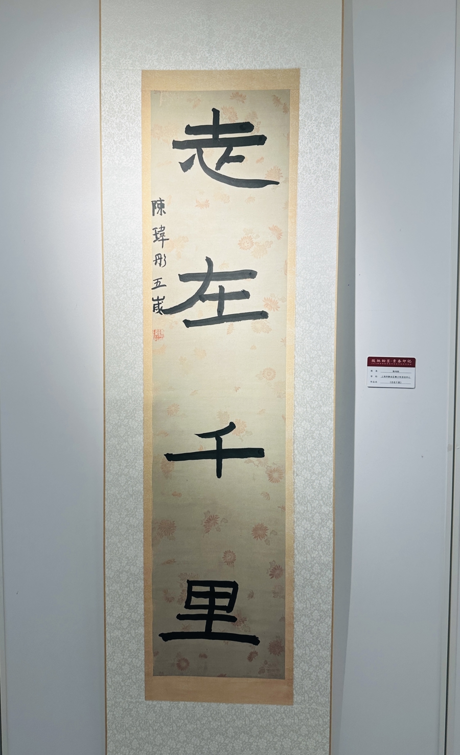 继承传统,也融入创意。同学们有的选择自己喜爱的经典诗词、励志名句进行创作;有的则在AI帮助下打磨自己的原创“金句”。同学们把青铜器上的图案、国画竹子等都融进了篆刻作品,使边款更加丰富,也尝试把寻常物品和书法结合,时刻提醒自己修身养德。5岁女孩陈玮彤学习书法才一个多月,“志在千里”几个大字颇有童真趣味,和哥哥姐姐的作品们陈列在一起,成为这个书法女孩最好的启蒙礼物。